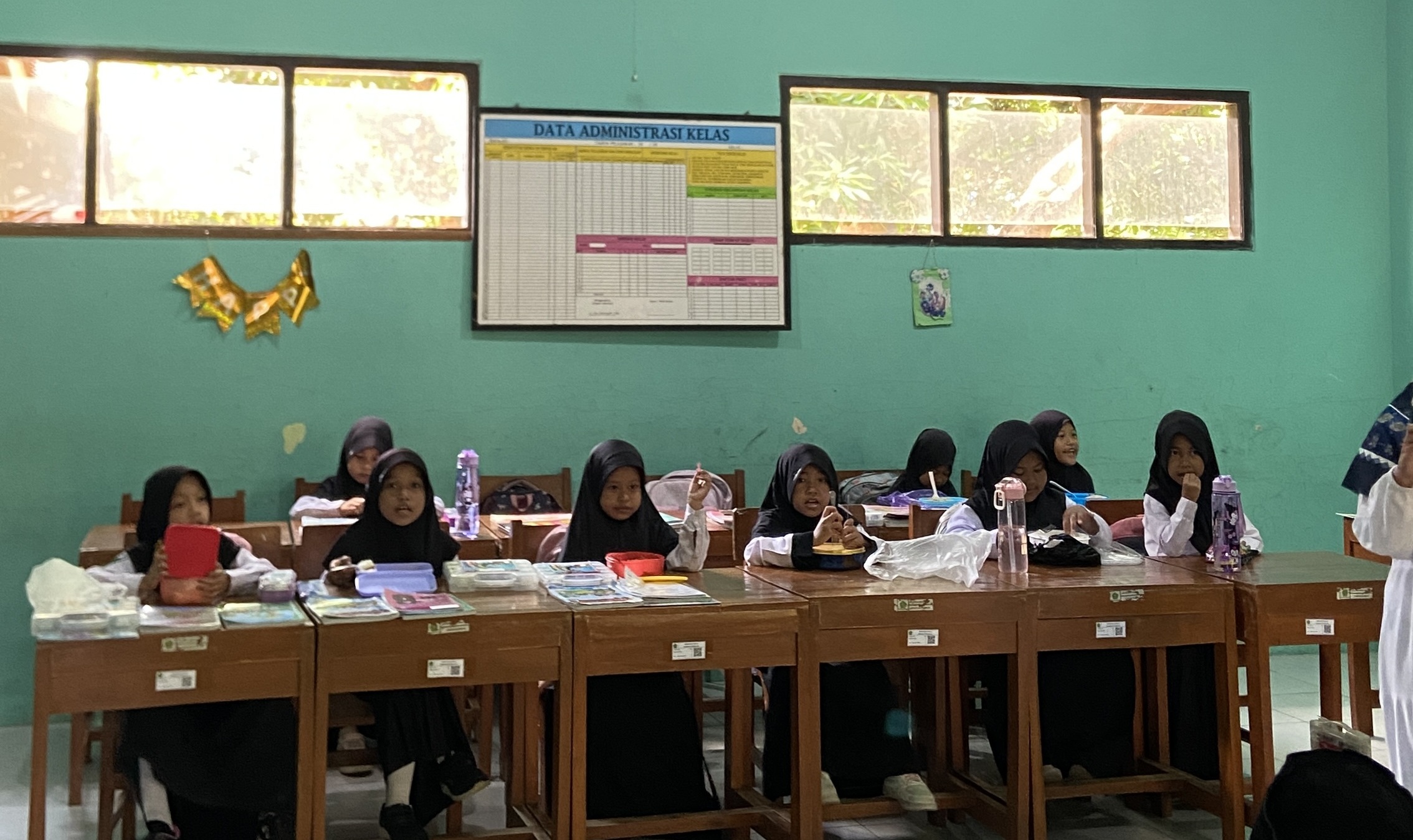 Setelah istighosah, acara dilanjutkan dengan makan bersama. Semua peserta—baik siswa, guru, maupun staf sekolah—bersantap bersama dalam suasana penuh kebersamaan dan kekeluargaan. Kegiatan makan bersama ini memperkuat hubungan antara seluruh warga sekolah, menciptakan ikatan yang lebih erat di luar aktivitas belajar mengajar.